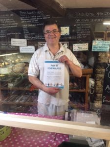 Paying it Forward is the act of buying something for someone that you don’t know and will probably never meet. When you see a PAY IT FORWARD poster or sticker in shops and businesses across Mendip and you are buying something for yourself, you could buy a second for someone else. You’ll find the window sticker displayed around Frome in shops and cafes. Frome Town Council have produced this YouTube video Frome Pays it Forwards – YouTube